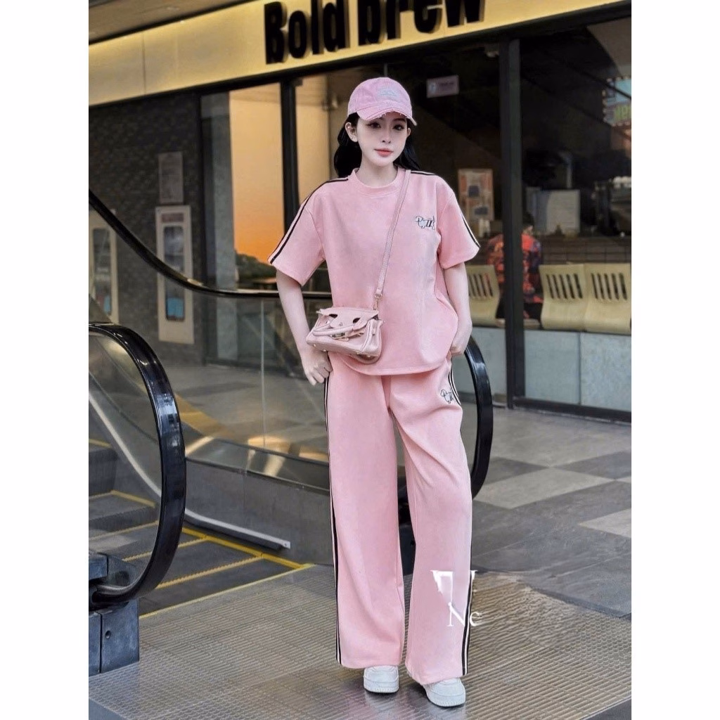🔥 Set Bộ Đồ Mì Hàn Thom Thêu Cún Áo Phong Ngắn Tay Sọc Vai Mix Quần Suông Dài Ống Rộng chất mềm mịn hot 2025 đang giảm giá!
